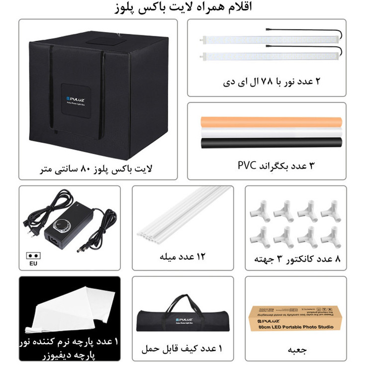 ویژگی ها: قدرت خروجی 80 وات / ابعاد 80 سانتی متر / رنگ سفید دمای رنگ 5500 کلوین / شار نور 9050 لومن / امکان عکاسی از زاویه بالا و روبرو / بدون پرش نور /