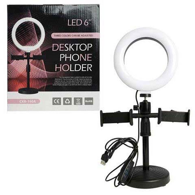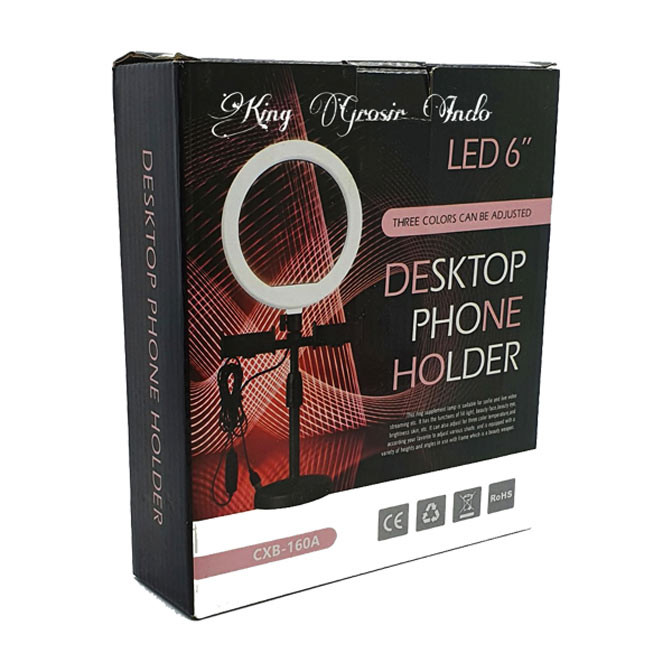 اقلام همراه :یک عدد رینگ لایت / یک عدد بال هد / دو عدد نگهدارنده موبایل / پایه نگهدارنده رینگ لایت