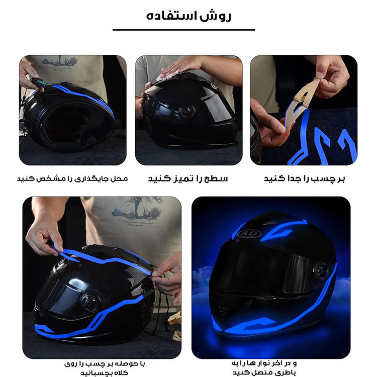 چراغ تزئینی کلاه کاسکت بر روی تمامی کلاه ها قابل نصب است و با باتری می توانید علاوه بر ایمنی ، زیبایی خاصی را به کلاه کاسکت خود بدهید.