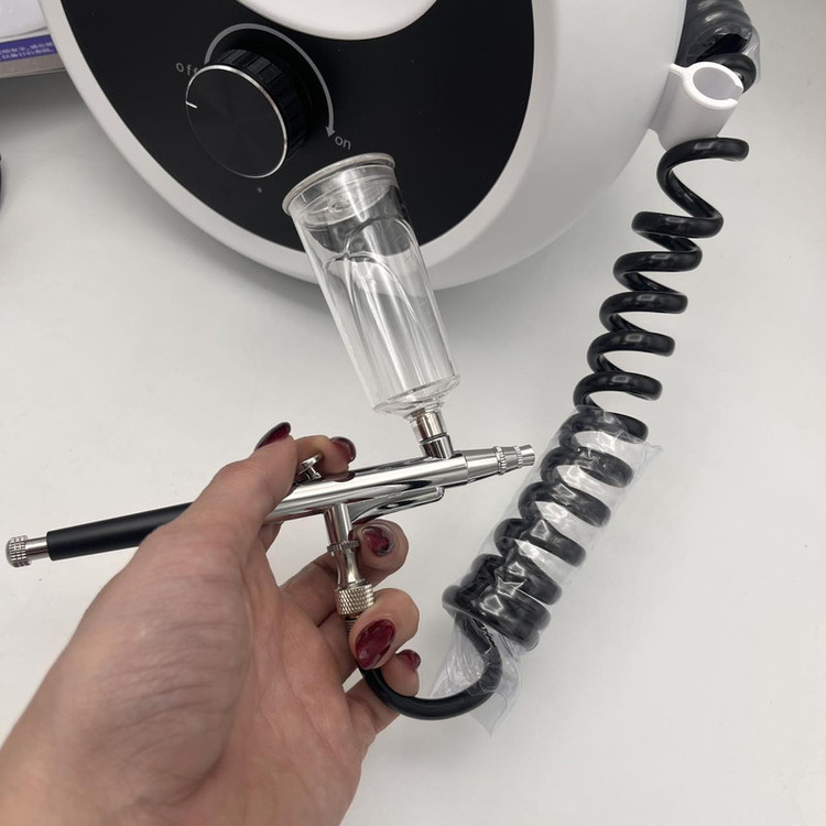 دو مخزن پلاستیکی ، کابل دستگاه و تفنگ ایر براش