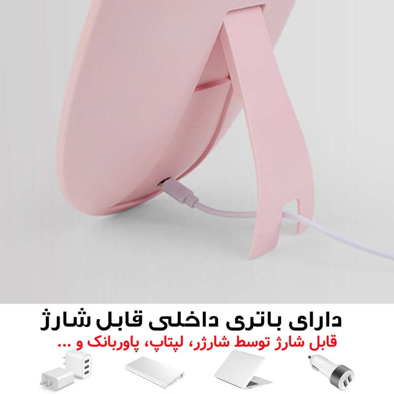 دارای سه نور افتابی مهتابی و ترکیبی ، دکمه لمسی ، باطری داخلی قابل شارژ
