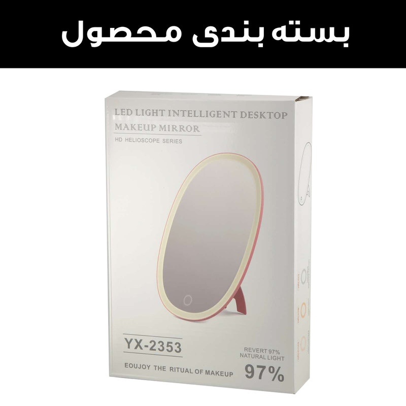 آینه آرایشی چراغ دار مدل YX-2352 با کیفیت و با امکان تنظیم نور، تصویری واضح، طبیعی و بینقص را به شما ارائه میدهد تا بتوانید جزئیات بهتری را در زمان میکاپ ببینید و در زیبایی هر چه بیشتر شما نقش بسزایی را ایفا خواهد کرد. این آینه آرایشی دارای قابلیت تنظیم شدت و تراکم نور است و نور آن در سه رنگ سفید، زرد و نور طبیعی قابل تنظیم است. قابلیت تنظیم میزان نور و رنگ نور این امکان را به شما میدهد که میکاپ خود را بر اساس زمان و محیط مورد نظر خود اعم از روز یا شب بودن و یا متناسب با نور طبیعی بیرون و یا محیطهای بسته و مسقف با نور مصنوعی تنظیم کنید. دکمه تنظیمات نور در این محصول به صورت لمسی و روی آینه تعبیه شده است تا استفاده از آن راحتتر باشد. این دکمه لمسی به صورت چند عملکردی است و با لمس شدن رنگ نور تغییر میکند و همچنین نور خاموش و روشن میشود و با نگه داشتن دکمه شدت نور تغییر میکند. همچنین زاویه آینه نیز توسط پایهای که در پشت محصول تعبیه شده است قابل تنظیم است و این پایه به منظور کاهش حجم و قابلیت حمل آسانتر به صورت تاشونده طراحی شده است.