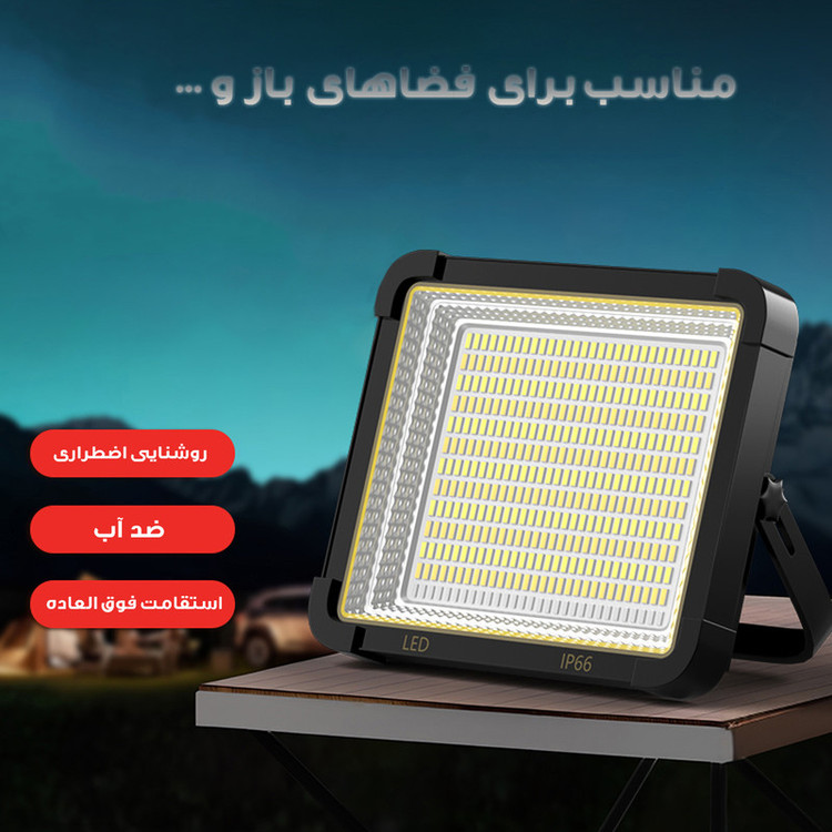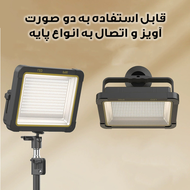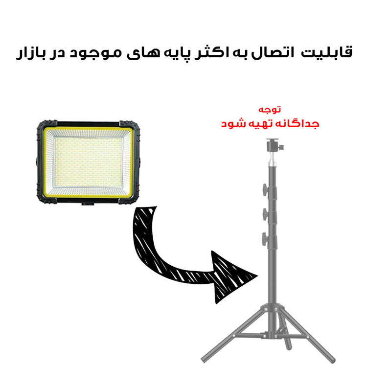 دارای باطری داخلی قابل شارژ ، نور های افتابی و مهتابی ، ترکیبی (خنثی) ، نور ابی و قرمز ، قابلیت اتصال به پایه اویز و تکیه گاه برای سطوح صاف