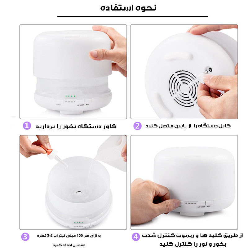 دستگاه بخور سرد SL-500 با طراحی زیبا و تکنولوژی جدید مناسب محیطهای بسته بوده و هوا را بسیار مطبوع می سازد. این دستگاه با حجم مخزن 0.5 لیتر به مدت زمان حدود 6 ساعت، با بخار دهی 90 میلی لیتر بر ساعت برای محیطی حدود 40 متر مربع، فضای بسیار مطلوبی ایجاد خواهد کرد. از مزایای این مدل جدید نحوه پر کردن مخزن اب است که در این مدل با برداشتن درپوش بالای دستگاه اضافه نمودن اب به راحتی انجام میشود و دیگر نیازی به جابجایی یا برداشتن مخزن اب نمیباشد. از اشکالات جابجایی مخزن علاوه بر امکان سوختن دستگاه و خطر برق گرفتگی در صورت عدم رعایت دستوالعمل سنگین بودن آن بعد از پر نمودن اب و خطر لیز خوردن و شکسنه شدن میباشد. از مزایای این دستگاه مصرف بسیار کم در حد ماکزیمم بخار 13 وات میباشد. همچنین این دستگاه از کیفیت بالای ساخت برخوردار است. دستگاه بخور با عملکرد بسیار ساده، بسیار کم صدا است و دارای موتور قدرتمندی است که بخار و فشار هوای مناسبی جهت لطافت فضای محیط منزل یا محل کار شما تولید خواهد نمود. همچنین میزان بخار خروجی بوسیله نازل قرار داده شده روی دستگاه، قابل تنظیم می باشد. دلیل مسائل امنیتی هنگامیکه آب دستگاه به اتمام برسد، عملکرد دستگاه بطور اتومات قطع می گردد. همچنین دستگاه دارای کنترلر بی سیم میباشد تا شما بدون دست زدن به دستگاه رنگ نورپردازی را تغییر دهید یا این که روی دستگاه تایر فعالیت ست کنید یا نوع پاشش بخور را تغییر دهید