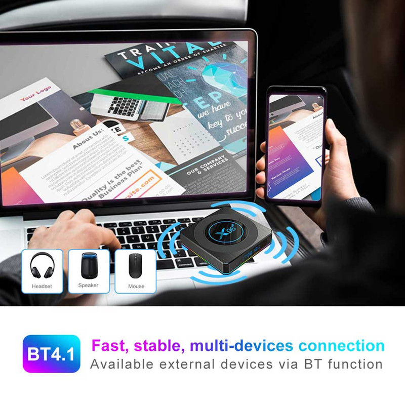 پردازشگر مرکزی جدید و فوق العاده قدرتمند Amlogic S905W4 و پردازنده گرافیکی Mali-G52 1-Core-2EE میباشد. اندروید باکس X96 X4 یک دستگاه با قدرت پردازش و گرافیک بالا که به راحتی شما را در اجرای برنمامه ها و بازی ها یاری میکند.