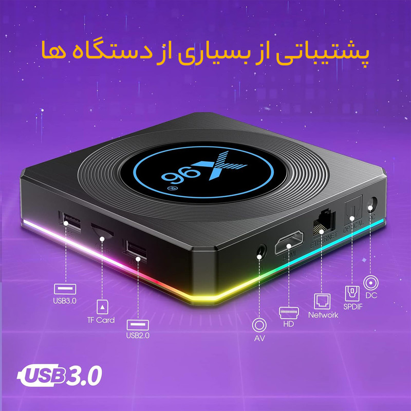 X96 X6 از فرمت ویدئویی :8K@30fps و تصاویر سه بعدی پشتیبانی میکند.پشتیبانی از بازیهای سه بعدی ، ویدئوی سه بعدی و فایلهای ISO Miracast ، NTSC ، PAL و علاوه بر این ، فیلم ها ، موسیقی ها ، عکس های دستگاه های android / IOS شما را می توان در DLNA / Airplay بر روی صفحه نمایش بزرگ و بهترین بلندگوها به اشتراک بگذارد تا از بهترین تجربه سرگرمی لذت ببرید