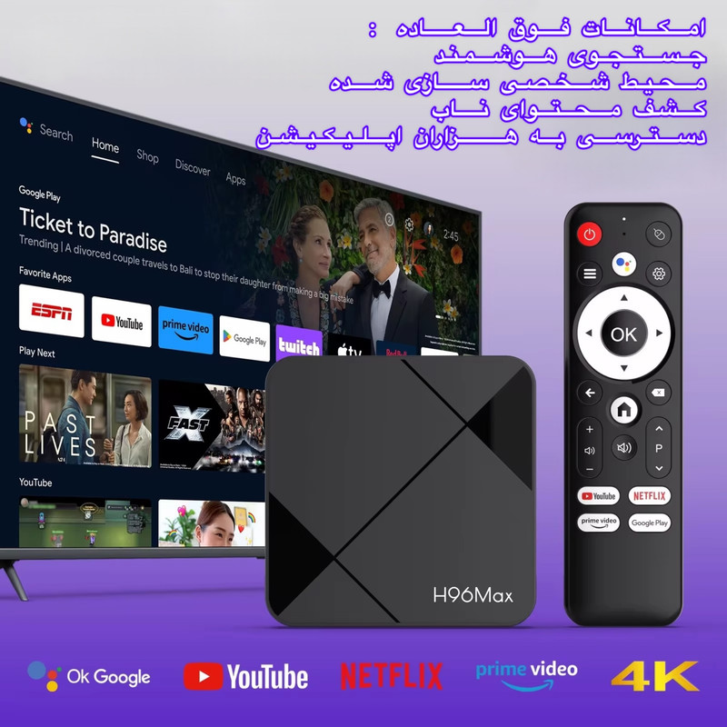 این دستگاه تلویزیون شما را به یک مرکز سرگرمی کامل و حرفهای تبدیل میکند. این دستگاه با ترکیبی از قدرت سختافزاری بالا، پشتیبانی از ویدیوهای 4K و سیستم عامل پیشرفته اندروید 14، تجربهای بینظیر از تماشای فیلم، سریال و بازیهای اندرویدی ارائه میدهد. H96Max مجهز به پردازنده چهار هستهای Rockchip RK3518 و پردازنده گرافیکی ARM Mali-450 MP2 است که سرعت بالا و اجرای روان برنامهها و بازیها را تضمین میکند. با 2 گیگابایت RAM و 16 گیگابایت حافظه داخلی، میتوانید بدون نگرانی از کندی سیستم، چندین اپلیکیشن را همزمان اجرا کرده و به راحتی به محتوای مورد علاقه خود دسترسی داشته باشید. تماشای فیلم و سریال با کیفیت 4K Ultra HD با نرخ 60 فریم بر ثانیه تجربهای متفاوت و واقعی است و هر صحنه با وضوح شفاف و رنگهای زنده نمایش داده میشود تا جزئیات کوچک در صحنههای اکشن یا مناظر طبیعی کاملاً واضح باشند. سیستم عامل اندروید 14 دسترسی شما به هزاران اپلیکیشن محبوب از Google Play را فراهم میکند و امکان نصب برنامههای شبکههای اجتماعی، اپلیکیشنهای ورزشی، خبری و آموزشی را به آسانی میدهد، محیط کاربری ساده و روان تجربهای راحت و بدون پیچیدگی ارائه میکند. از نظر اتصالات، H96Max دارای پورت HDMI 2.0، USB 3.0، USB 2.0، پورت اترنت RJ-45، کارت microSD و خروجی AV است و اتصال بیسیم از طریق Wi-Fi 6 و بلوتوث 5.4 امکانپذیر است، این ویژگیها اتصال به تلویزیون و دستگاههای جانبی دیگر را سریع، راحت و بدون محدودیت میکند. با H96Max تلویزیون شما فقط برای تماشای برنامههای معمولی نیست، بلکه میتوانید فیلم و سریالها را در Netflix، YouTube، Amazon Prime و سایر پلتفرمها تماشا کنید، بازیهای اندرویدی را اجرا کنید و از دنیای سرگرمی دیجیتال لذت ببرید، تنها با چند کلیک تلویزیون شما تبدیل به یک مرکز سرگرمی هوشمند و همهجانبه میشود. H96Max هوشمند، سریع، باکیفیت و سرگرمکننده است و انتخابی مطمئن و ایدهآل برای کسانی است که میخواهند تجربهای جدید و پیشرفته از تماشای تلویزیون داشته باشند و خانه خود را به یک مرکز سرگرمی دیجیتال تبدیل کنند. کیفیت تصویر بینظیر، عملکرد سریع، دسترسی به هزاران اپلیکیشن و کاربری آسان همه در یک دستگاه جمع شدهاند تا لحظات سرگرمی شما را به یادماندنی کنند.