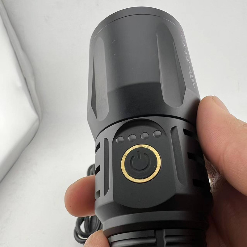 چراغ قوه SD-7008 مجهز به باتری لیتیوم یونی داخلی قابل شارژ است که از طریق پورت ۵ ولت / ۱.۵ آمپر شارژ میشود. نشانگرهای LED روی بدنه، میزان شارژ باتری را بهصورت مرحلهای نمایش میدهند تا کاربر از وضعیت آن آگاه باشد.