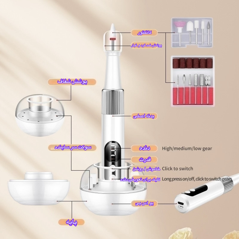 سوهان برقی HY62 دارای سه سطح تنظیم سرعت است که میتوان بر اساس نوع کار و حساسیت ناخن آن را تنظیم کرد. این دستگاه از طریق کابل USB با آداپتور ۵ ولت و جریان ۱ آمپر شارژ میشود و تنها در سه ساعت بهطور کامل شارژ میگردد. طراحی بیسیم و وزن سبک آن باعث شده برای استفاده در منزل، سفر یا سالنهای زیبایی گزینهای ایدهآل باشد.