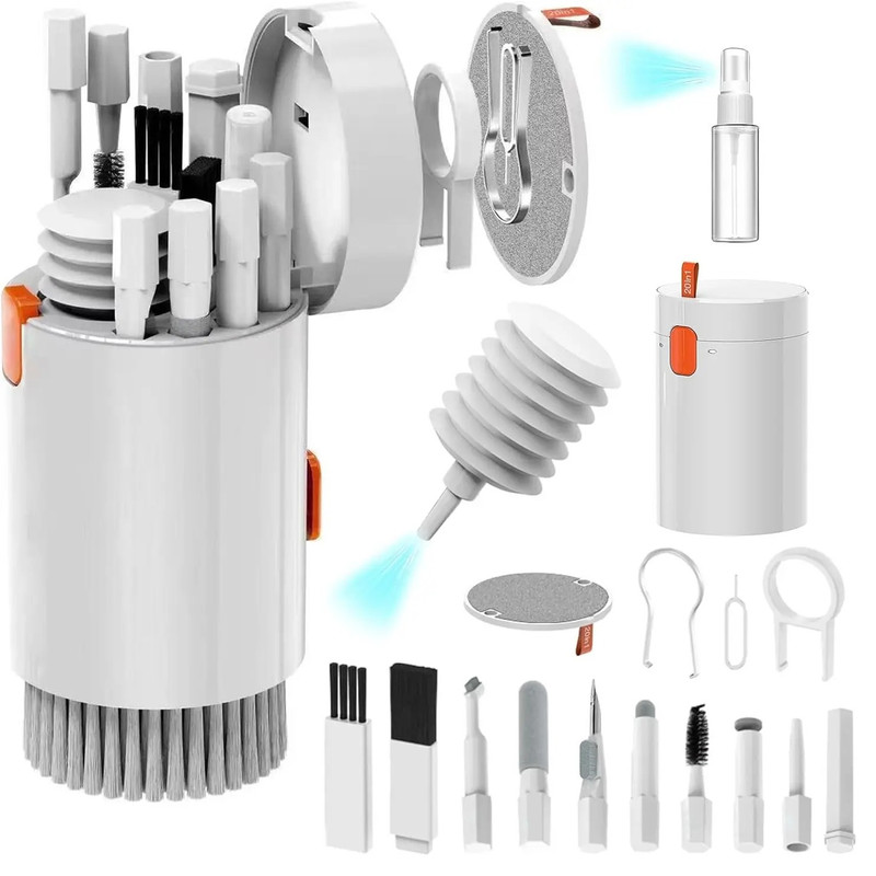 کیت multifunctional cleaning brush مدل ًQ20in1 شامل پکیج 20 عددی و کاملی از ابزار تمیز کننده مناسب و استاندارد برای ایرپاد - موبایل - کیبورد - لپ تاپ و ... میباشد که تمام این پکیج در یک سایز کاملا مناسب قرار داده شده است . این پکیج شامل تمیز کننده 3 کاره ایرپاد و گیره دراوردن دکمه کیبورد و براش تمیز کننده کیبورد و ... و مخزن اسپری که داخلش میتواند با مواد تمیز کننده یا الکل پر شود . این پکیج با قیمت فوق العادش میتونه یه پیشنهاد عالی برای شما عزیزان باشه که به لطف ساختار پلاستیکیه خودش وزن نسبتا کمی دارد .