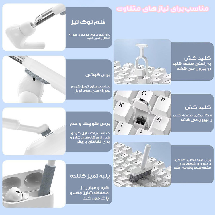 مناسب برای تمیز کردن: گوشی موبایل , تبلت , دوربین و لنز دوربین , مانیتور و تلویزیون , قطعات الکترونیکی , هدفون , کیبورد
