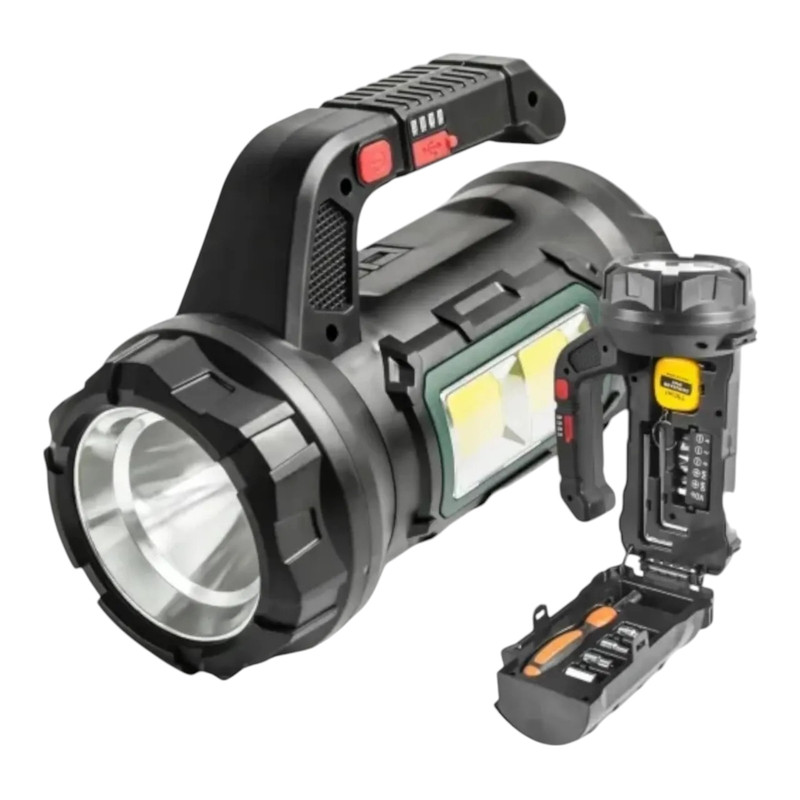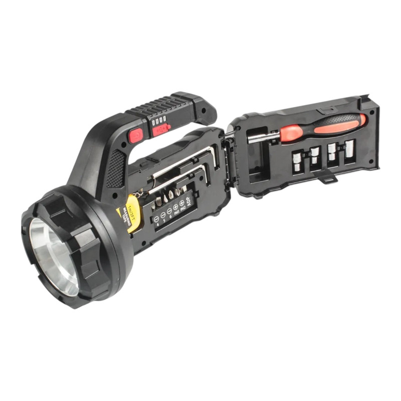 چراغ قوه دستی HG یک محصول فوق العاده کاربردی برای استفاده در منزل و بیرون از منزل میباشد ، این محصول علاوه بر این که یک چراغ قوه میباشد ، در داخل خود یک جعبه ابزار دارد که میتوانید در مواقع ضروری از آن استفاده نمایید، جنس بدنه محصول از پلاستیک ABS میباشد و این محصول دارای یک باتری داخلی قابل شارژ 2400 میلی آمپری میباشد.