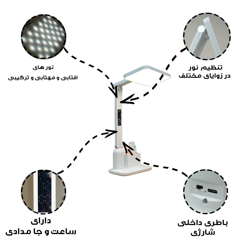 قابلیتها: قابلیت تنظیم زاویه تابش نور , قابلیت شارژ