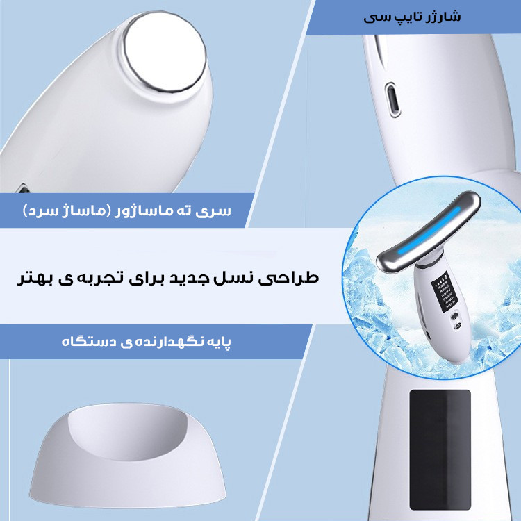 دستگاه لیفت و ماساژ صورت با قابلیت گرمایش و سرمایش و لرزش (6 حالت کاری)* دستگاه مراقبت پوستی AY-1686 یک دستگاه پیشرفته با طراحی ارگونومیک که برای پاکسازی عمقی، ماساژ و بهبود گردش خون پوست صورت طراحی شده است. این دستگاه با حالت های متفاوت و گرمای ملایم و سرمای ملایم ، به جوانسازی و افزایش کشش پوست کمک میکند. دارای 6 حالت کاری مختلف است که حالت نور آبی، لرزش تماسی مستقیم با پوست فعال می شود میتواند باعث کلاژن سازی، افزایش انعطاف پذیری پوست و بهبود حساسیت پوستی شود، حالت نور قرمز، اعث تقویت توان زیستی سلولها، افزایش جریان خون و تحریک فیبروبلاست میشود و همچنین نور بنفش،به همراه گرمایش و لرزش تماسی باعث تاثیر چشمگیری روی رفع خطوط عمیق، چین و چروک، خشکی پوست، افتادگی پوست، لکهها و جای زخم و همچنین جوانسازی پوست دارد و حالت دیگر تحریک موضعی، گرمایش و لرزش تماسی اندکی تنس الکتریکی است که همه ی این حالت ها قابلیت تنظیم شدت در4 سطح را دارند . حالت قطع خودکار را دارد که دستگاه پس از ۱۵ دقیقه استفاده به طور خودکار خاموش میشود تا از استفاده بیش از حد جلوگیری شود.