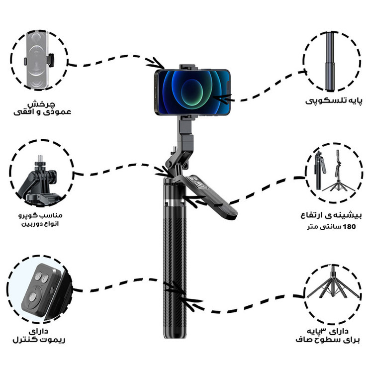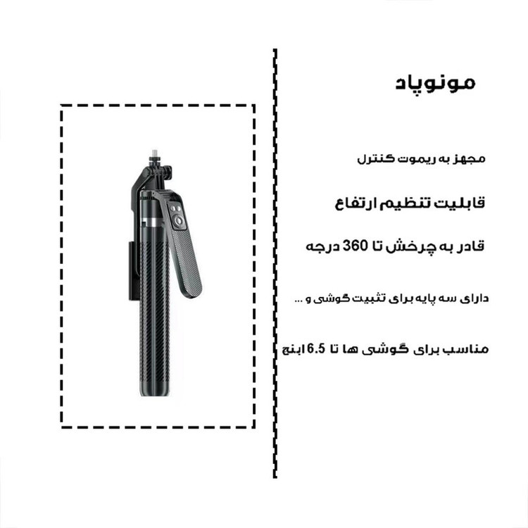 نوع پایه نگهدارنده گوشی و تبلت: مناسب برای عکاسی سلفی , مناسب برای استفاده روی میز