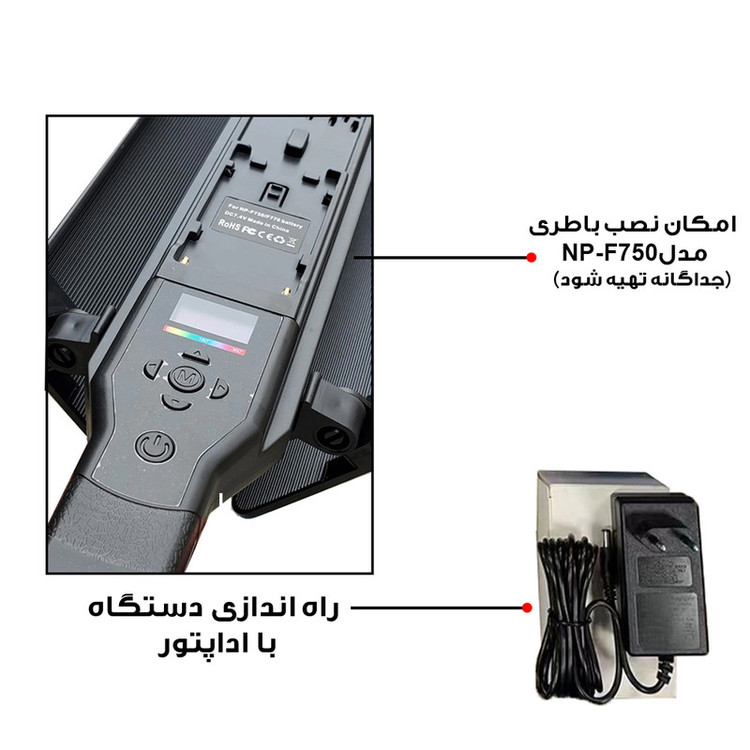 مناسب برای عکاسی از چهره و کالا دارای ریموت کنترل و کیف حمل اسان دمای رنگ : 2700-7500 قدرت :18W+15w(RGB)