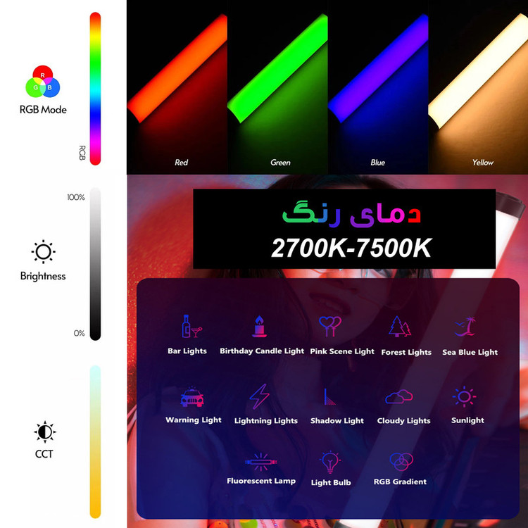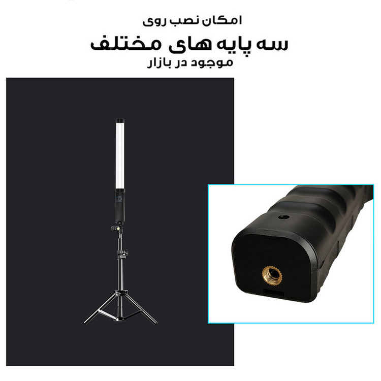 باتوم لایت مدل LED RGB Light Stick R1000 همه کاره محدوده دمای رنگ متغیر پیوسته را با یک طیف رنگ متغیر در یک نور ترکیب می کند. این باتوم لایت را می توان به گونه ای تنظیم کرد که شرایط محیط را برآورده کند و با وسایل دیگر مطابقت داشته باشد، یا فقط برای جلوه های رنگی خلاقانه. استفاده شود.