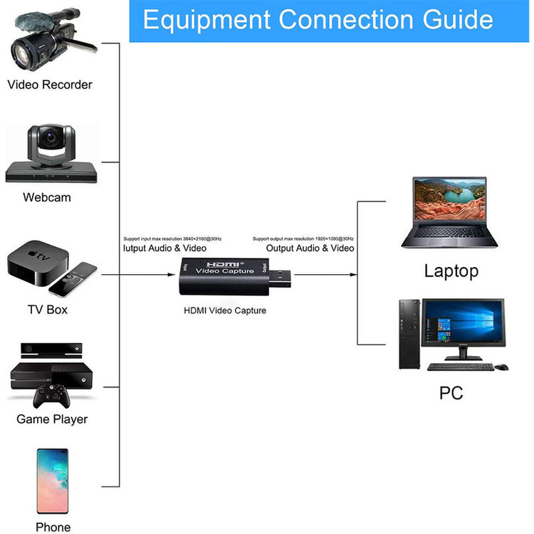 مشخصات: کارت فیلمبرداری HDMI، 4K، HDMI به USB، Full HD، 1080P، 30 فریم در ثانیه، ضبط از طریق DSLR، دوربین فیلمبرداری، دوربین اکشن برای پخش زنده، سازگار با Nintendo Switch، PS4، Xbox One، کامپیوتر است.