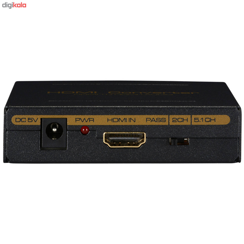 این تبدیل دارای یک پورت ورودی HDMI است و در طرف دیگر خروجی همان پورت HDMI را می دهد و همینطور خروجی صدای سفید و قرمز AV و خروجی اپتیکال می دهد.