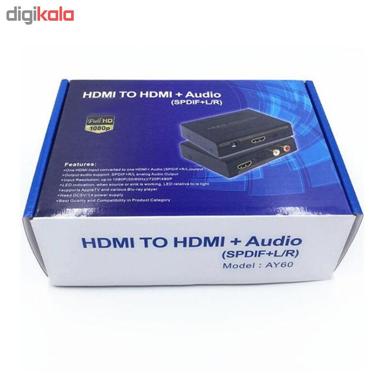 تبدیل HDMI به AUDIO دیجیتال و HDMI را می توان در مسیر کابل HDMI قرار داد و از آن یک خروجی صدای اپتیکال و یک خروجی صدای آنالوگ AVI و یک خروجی HDMI گرفت.