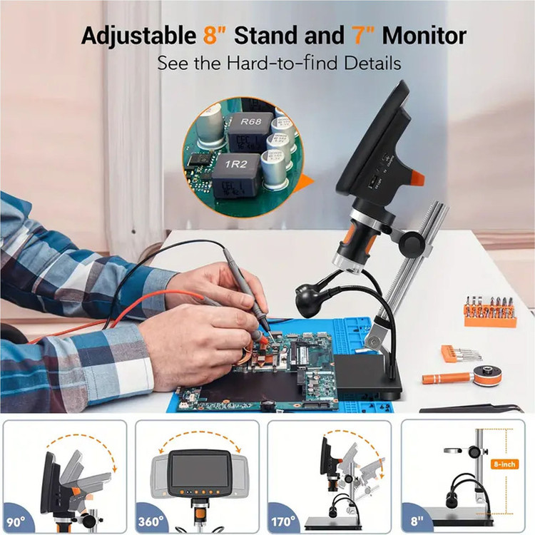 تجهیزات همراه : دارای ریموت-کنترل برای ذخیره و نمایش تصاویر - دارای باطری داخلی ۱۸۰۰ میلی آمپر - دارای میز کار بزرک به ابعاد ۱۲×۱۷ سانتیمتر