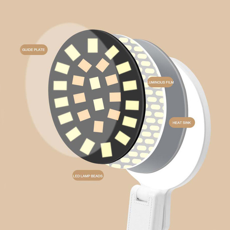 چراغ مطالعه شارژی ، دارای باطری داخلی قابل شارژ ، دارای دکمه لمسی ، قابلیت تنظیم شدت نور ، دارای 3 حالت روشنایی افتابی مهتابی و ترکیبی ، قابلیت تنظیم زاویه تابش ، نگهدارنده ی گوشی موبایل ذ