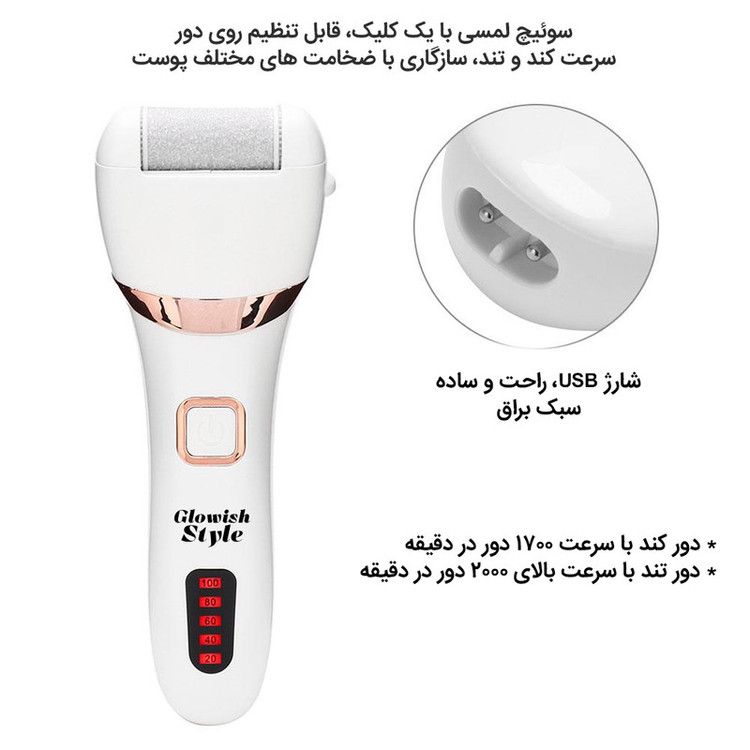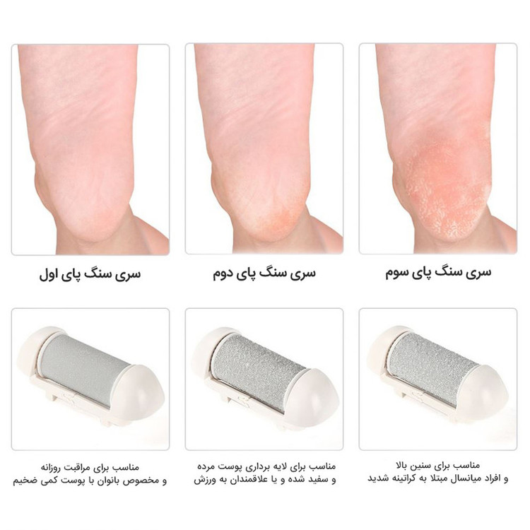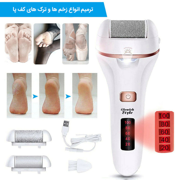 در این مجموعه 1 سر غلتکی ساده، 1 سر غلتکی معمولی و 1 سر غلتکی می توانید با آن ها تمام نیازهای پینه برداری خود را برآورده کنید. سر غلتکی درشت قابل شارژ مجدد که 360 درجه می چرخد تا نتایج سریع روی پوست ضخیم و پینه دار داشته باشد. با کیت پاک کننده پینه الکتریکی IWEEL، پاهای خود را با پدیکور اسپا مانند در آسایش خانه خود نوازش کنید. دو نوع سرعت در یک دکمه: سرعت 1700x/min متناسب با دور کند و 2000x/min متناسب با دور تند است. سرعت کم برای پینه دست و مراقبت از پوست ظریف تر مناسب است. سرعت بالا برای پینه های ضخیم سرسخت و پوست های مرده مناسب است. شما آزاد هستید که سرعت مورد نیاز خود را انتخاب کنید. 5 سطح نمایش باتری می توانید ببینید چقدر باتری باقی مانده و چه زمانی باید دستگاه شارژ شود. ظرفیت باتری 1200mah می باشد که می تواند برای 120 دقیقه زمانی که دستگاه به طور کامل شارژ شده است استفاده شود. طراحی ضد آب دستگاه دارای گواهینامه IPX7 مقاوم در برابر آب می باشد. قابل شستشو در زیر آب جاری به طور کامل می باشد. فقط توجه کنید که نباید در آب غوطه ور شود. توجه داشته باشید این محصول برای پوست خشک و زبر دست، پا یا پاشنه طراحی شده است و نباید در سایر نقاط بدن استفاده شود. برای جلوگیری از هر گونه تصادف یا آسیب به بدن یا محصول خود، لطفاً دستگاه از هرگونه نخ، لباس، مو و غیره دور نگه دارید با آداپتور بیش از 7 ولت شارژ نمی شود به طور معمول، ولتاژ خروجی آداپتور تلفن همراه یا رابط USB رایانه از 7 ولت بیشتر نمی شود که بهتر است با آن دستگاه را شارژ کنید، اما آداپتور آی پد یا رایانه از 7 ولت بیشتر می شود و برای شارژ مناسب نیست.