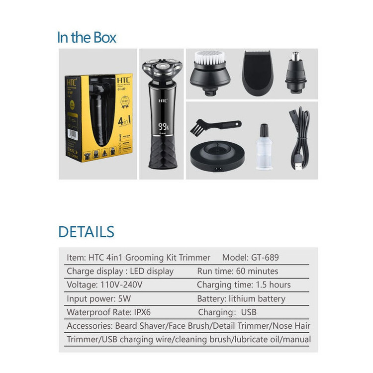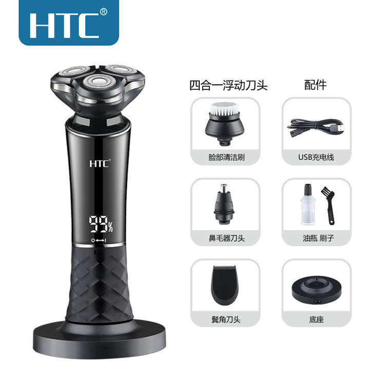 دستگاه شیور HTC سری صفر زن سری مو زن بینی سری خط زن سری فیس براش پایه شارژ کابل شارژ برس تمیز کننده