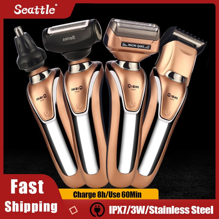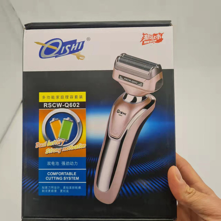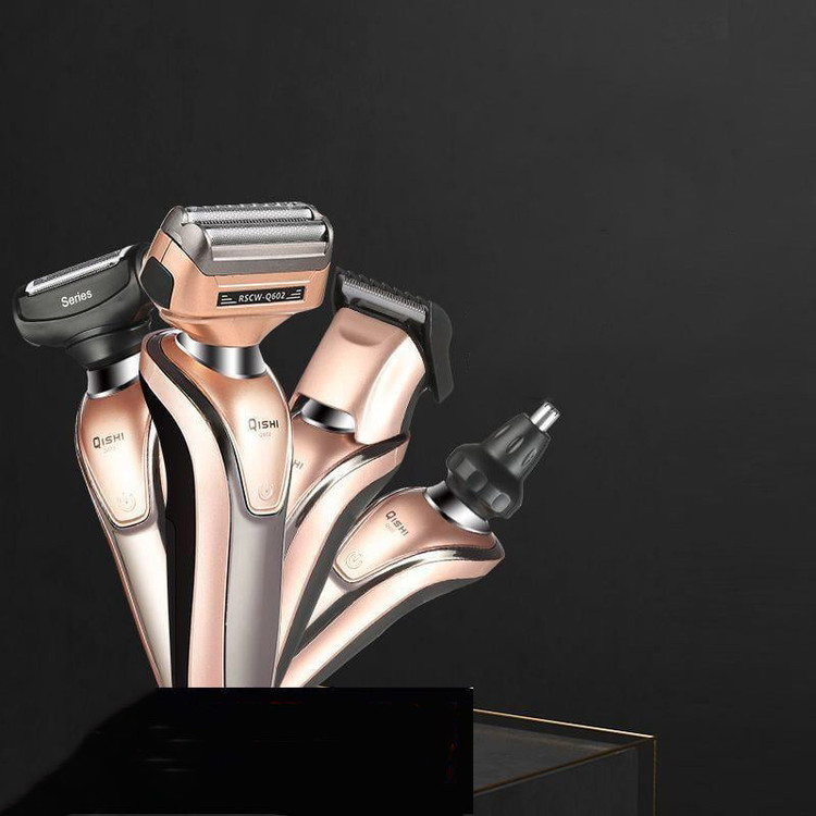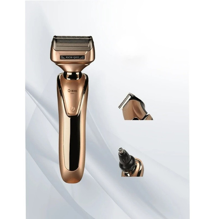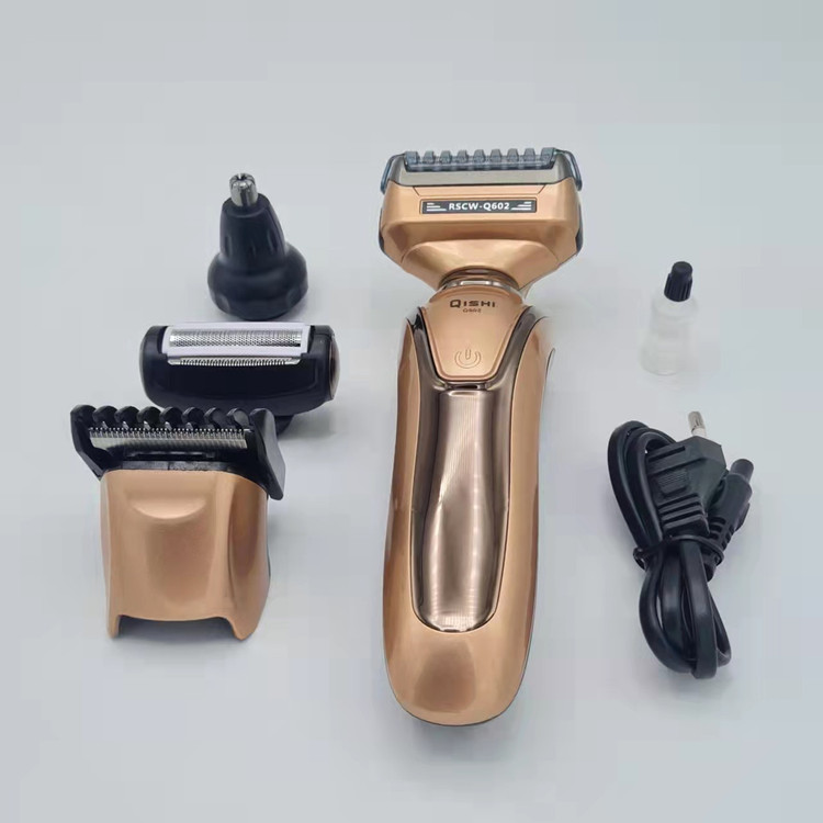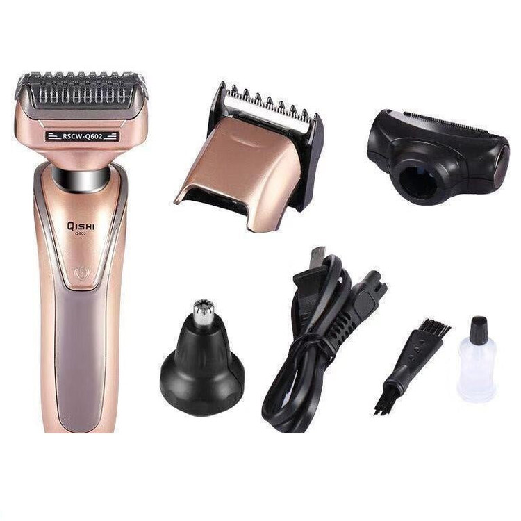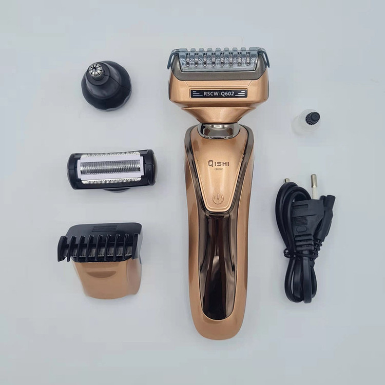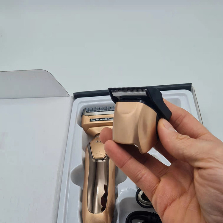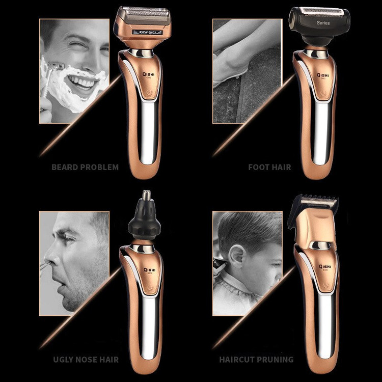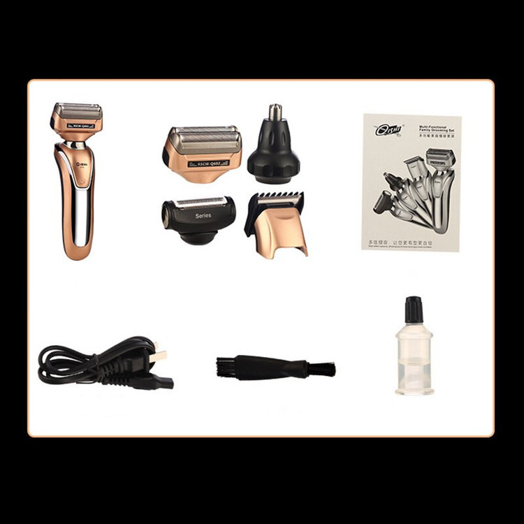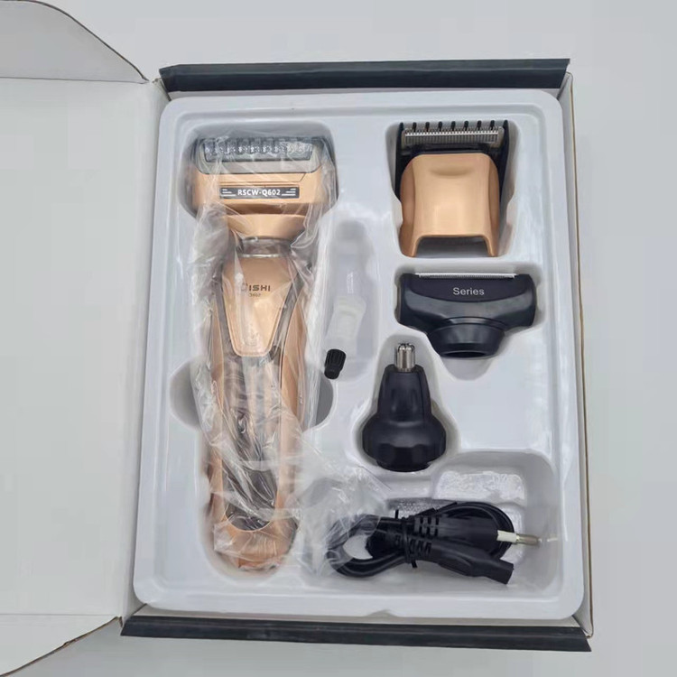 دستگاه ریش تراش . سری خط زن و شانه سایز بندی . سری صفر زن . سری مو های زاید . سری موزن گوش و بینی . کابل برق . روغن .