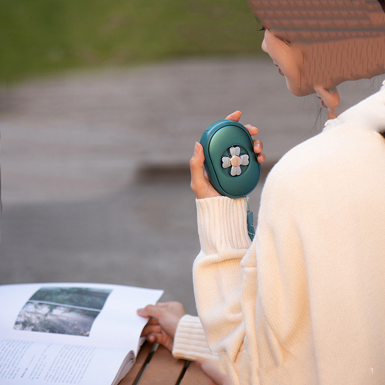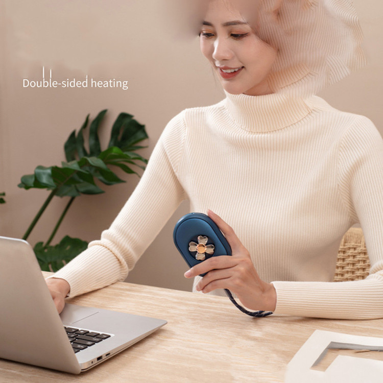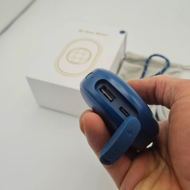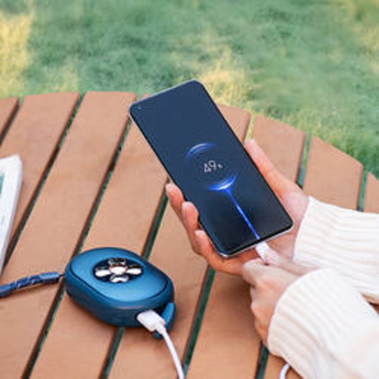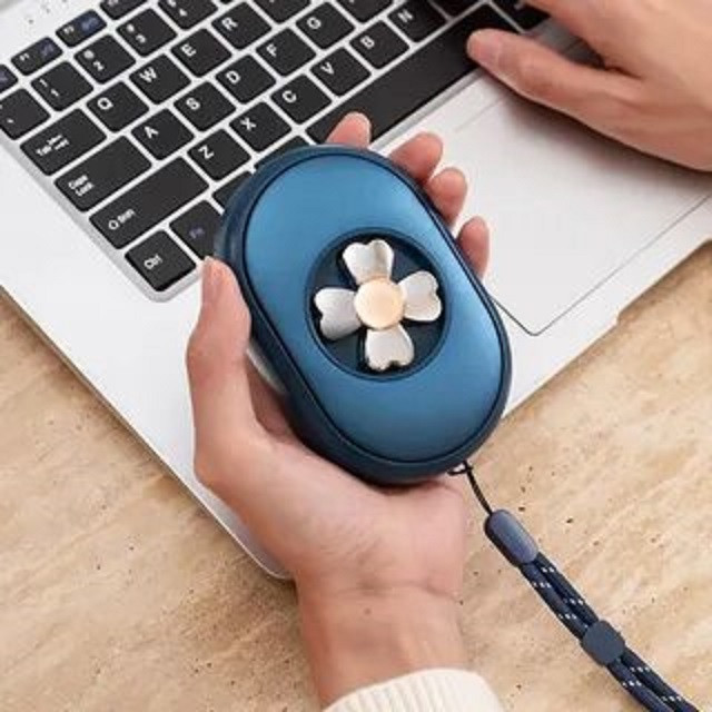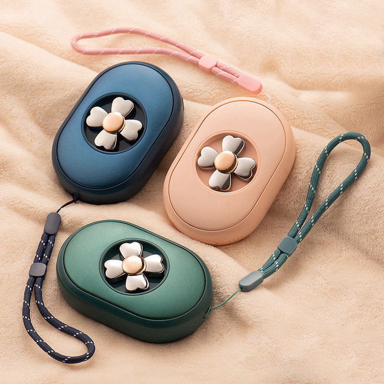 پاوربانک 5000 میلی آمپر و بخاری جیبی برقی . دارای بند نگه دارنده و کیسه حمل مخمل و همچنین کابل شارژ Type c طرح گل اسپینر متحرک