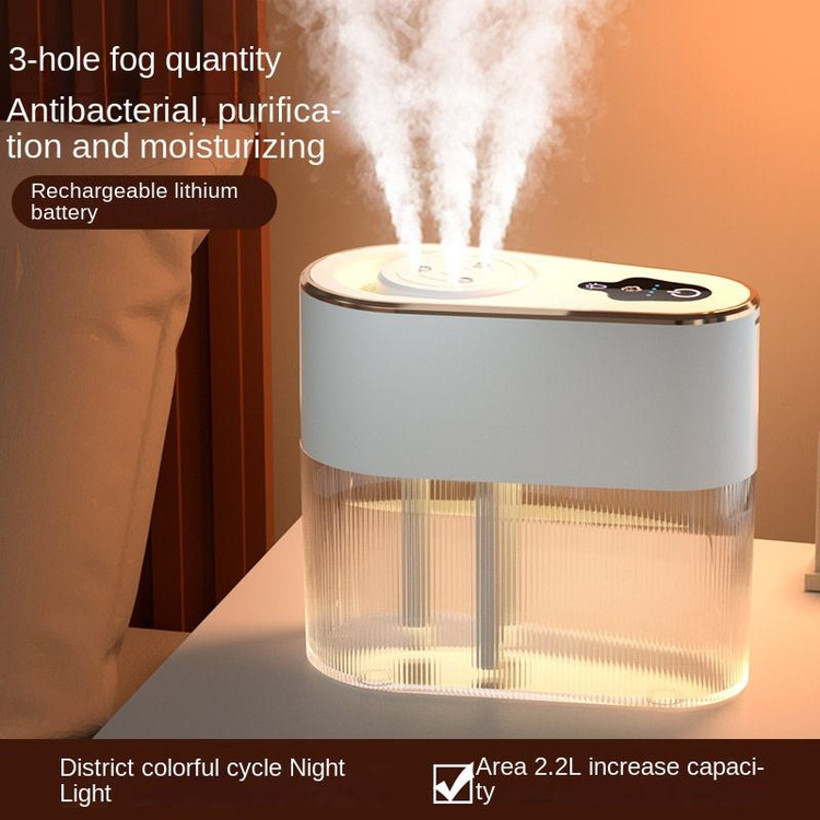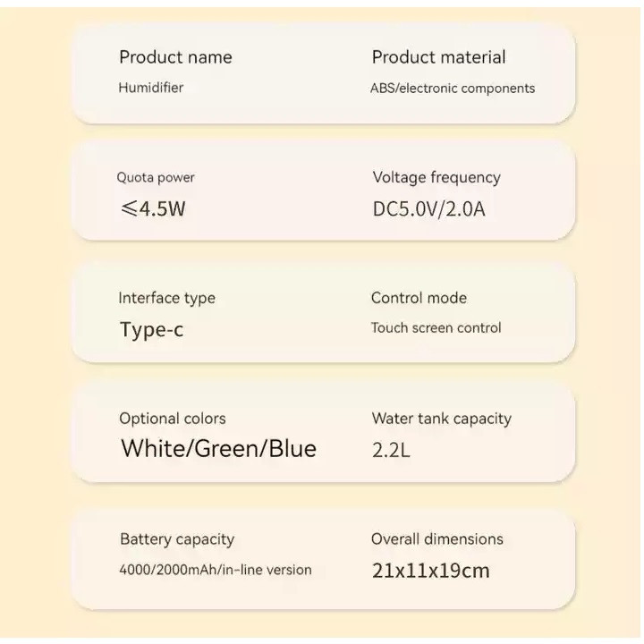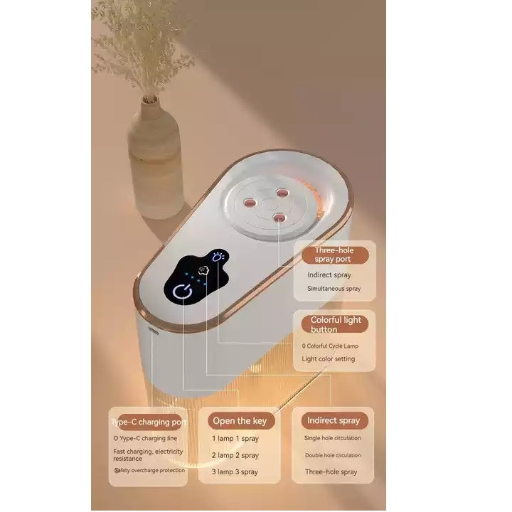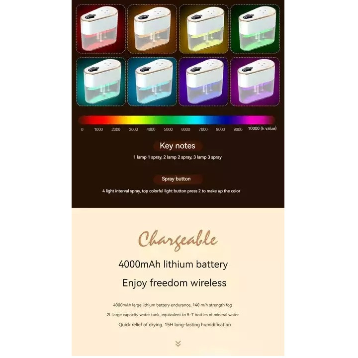 دارای 3 خروجی بخور و همچنین باطری داخلی 4000 میلی آمپر و ظرفیت 2.2 لیتر و همچنین نور پردازی و ورودی برق TYPE C