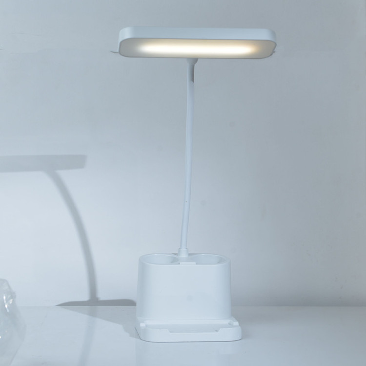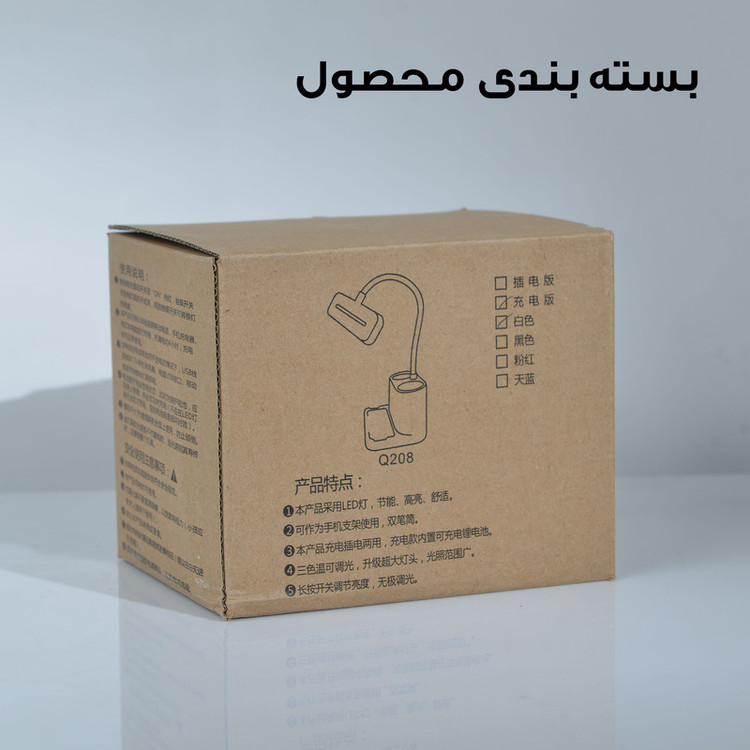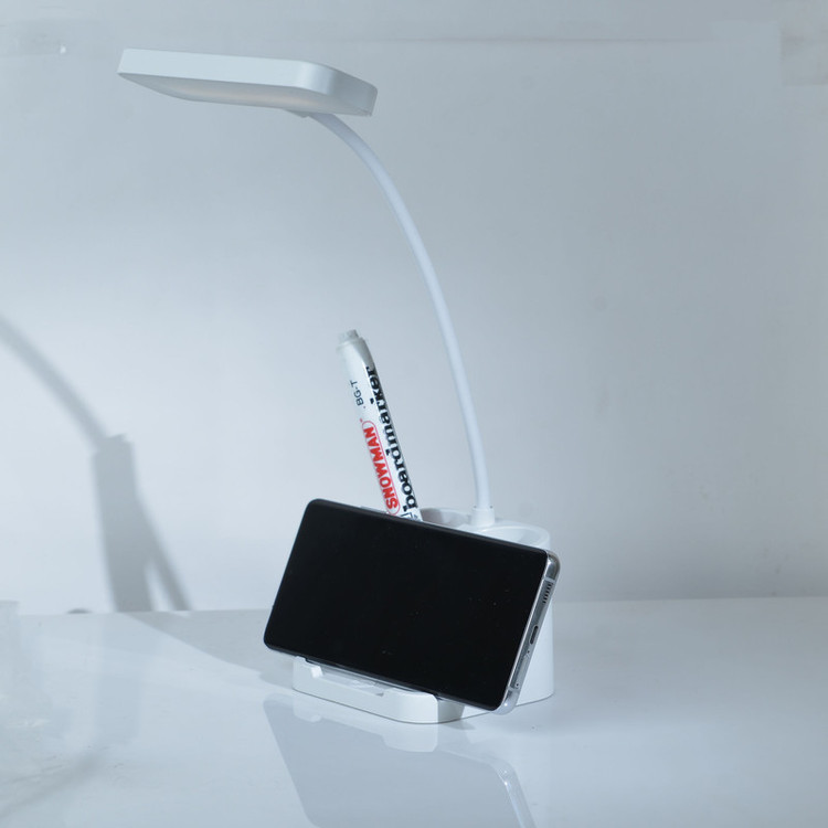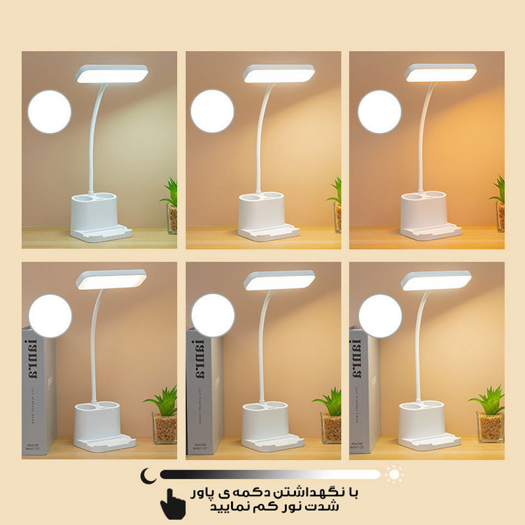 چراغ مطالعه مناسب برای استفاده اداری و دانش اموزان ،، دارای دکمی لمسی ، دارای سه رنگ نور افتابی مهتابی و نور خنثی ، قابلیت هولدر گوشی و جایی برای مداد وخودکار و ... دارای باطری داخلی قابل شارژ