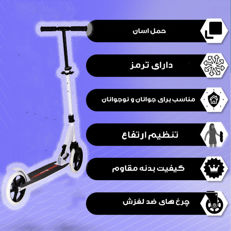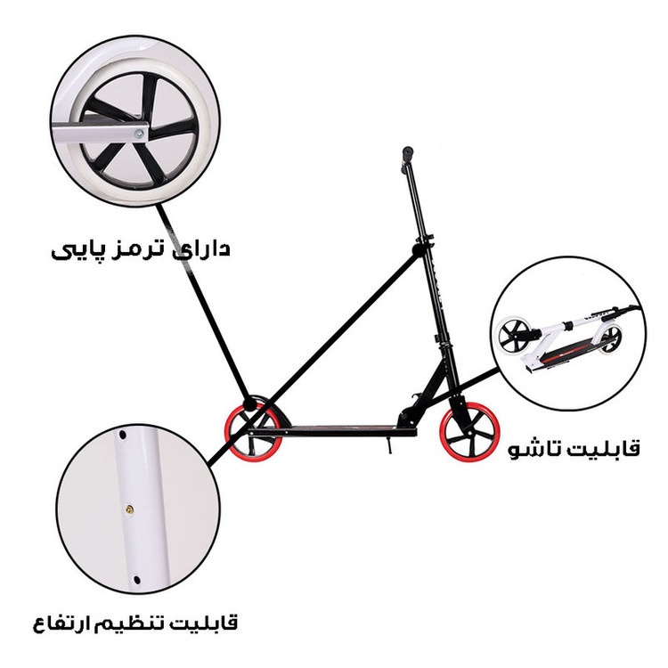 قابلیت تاشو ، دارای ترمز پایی ، قابلیت تنظیم ارتفاع در چند سطح